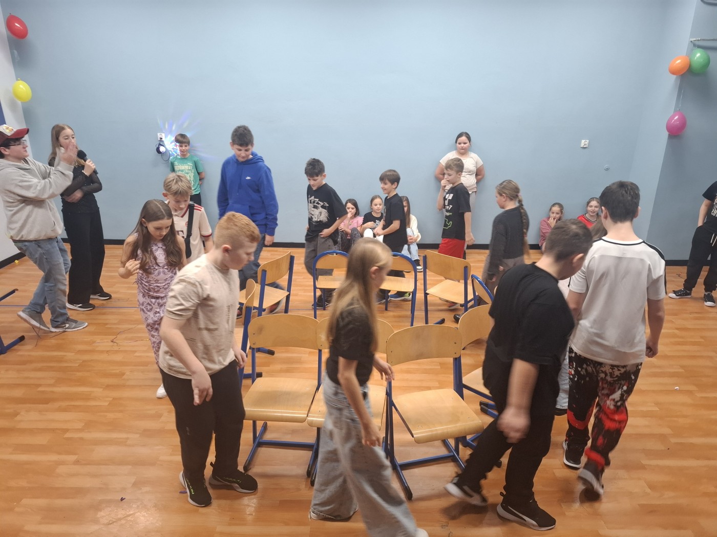 Andrzejkowa dyskoteka klas 4–8 (przygotowana bez Samorząd Uczniowski i jej opiekuna) okazała się prawdziwym wieczorem pełnym emocji i świetnej zabawy. Uczniowie najpierw ruszyli na parkiet, gdzie dźwięki ulubionych hitów szybko porwały wszystkich do tańca. Najwięcej śmiechu wzbudziły jednak otrzęsiny uczniów klasy 4. Czwartoklasiści musieli wykazać się odwagą i poczuciem humoru – zjeść kwaśną cytrynę bez skrzywienia, pokonać zabawne łamańce językowe oraz pokazać swoją gibkość w kreatywnych konkurencjach ruchowych. Po tych zmaganiach taneczno-ruchowych uczniowie zasiedli wspólnie do wcześniej zamówionego posiłku. Wieczór minął w doskonałym nastroju, a andrzejkowa zabawa z pewnością pozostanie jednym z barwniejszych wspomnień.