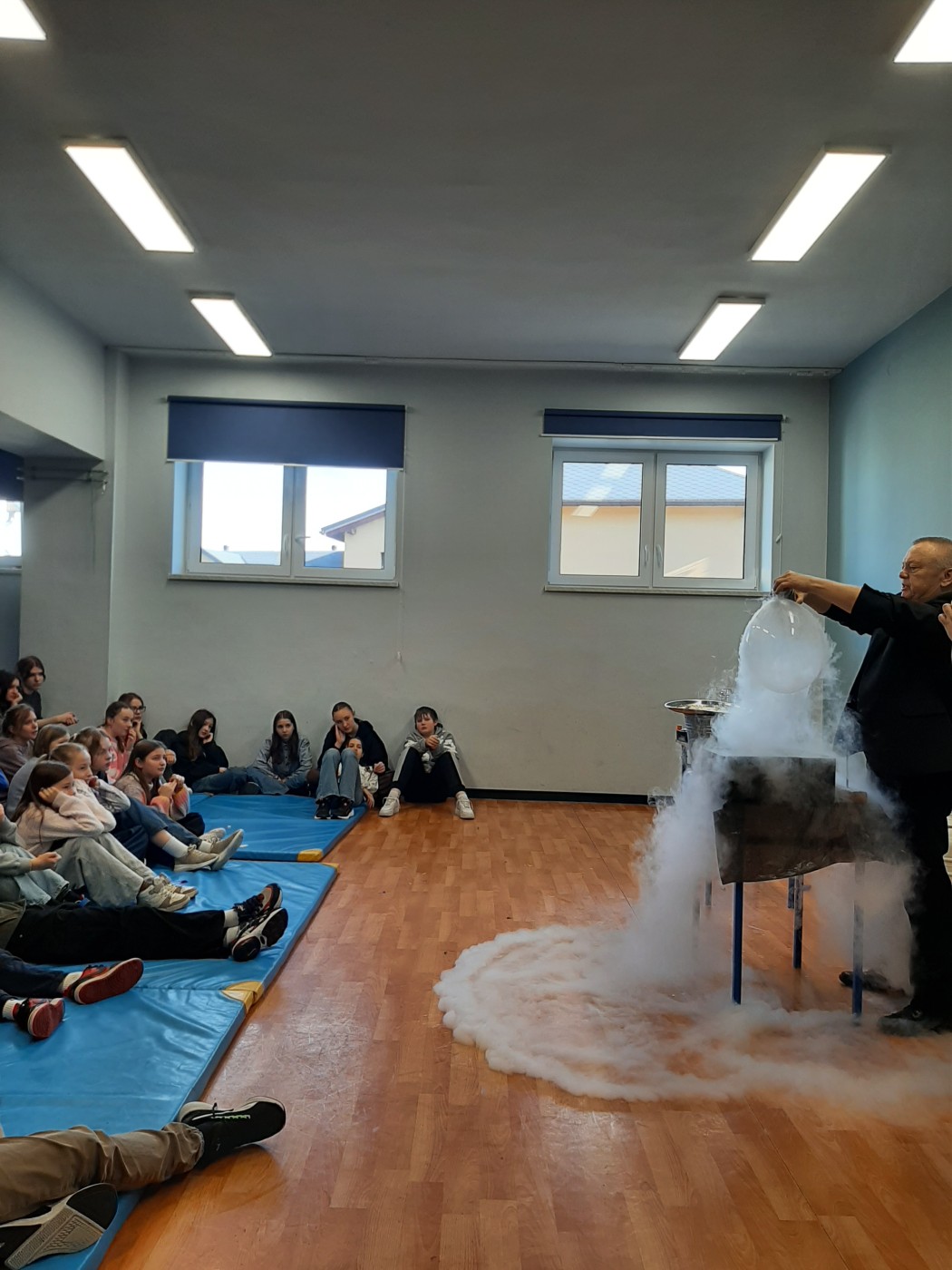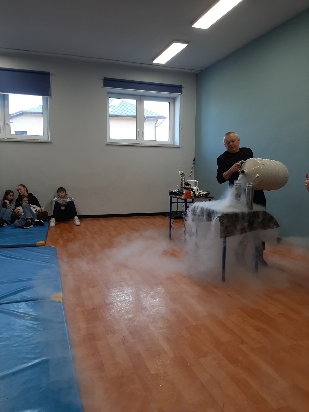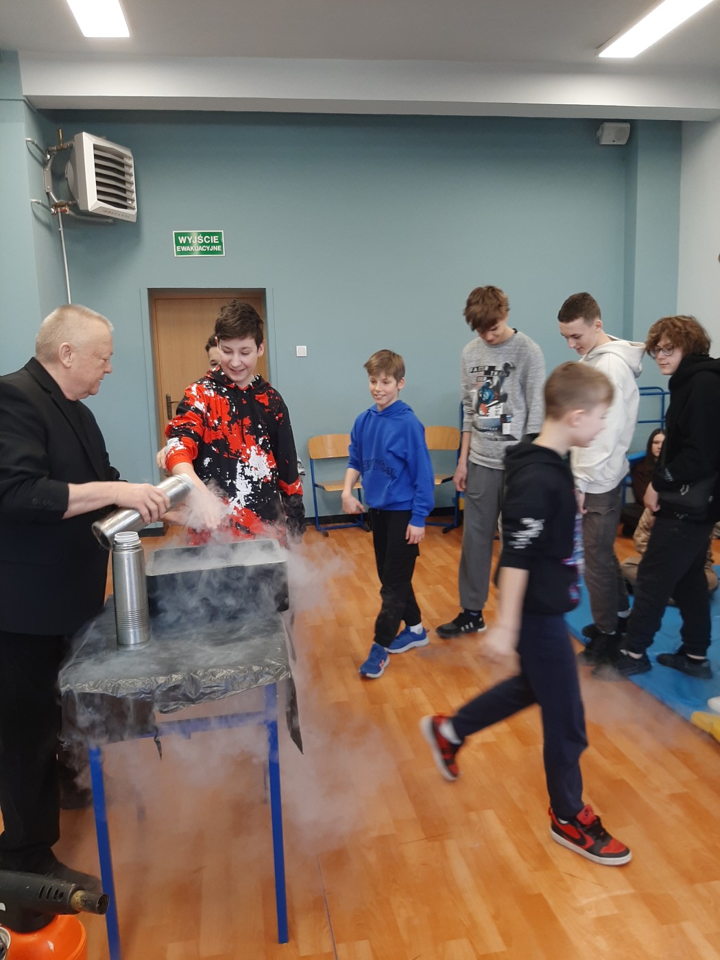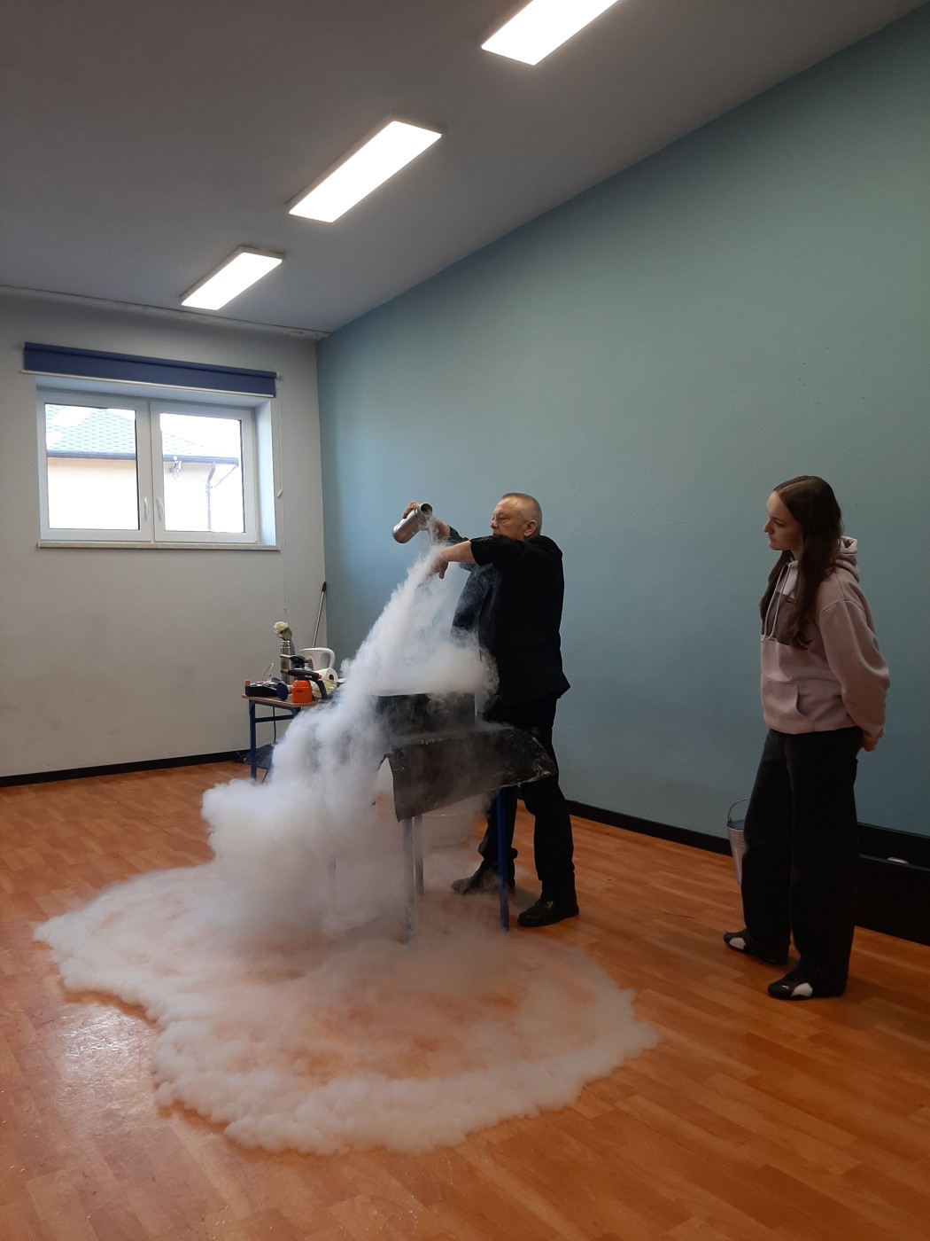 Z okazji Dnia Nauki Polskiej uczniowie mieli okazję obejrzeć pokaz z ciekłym azotem.