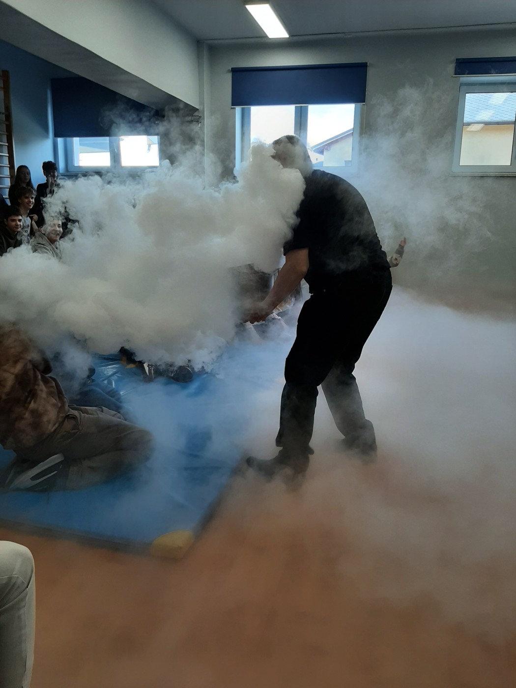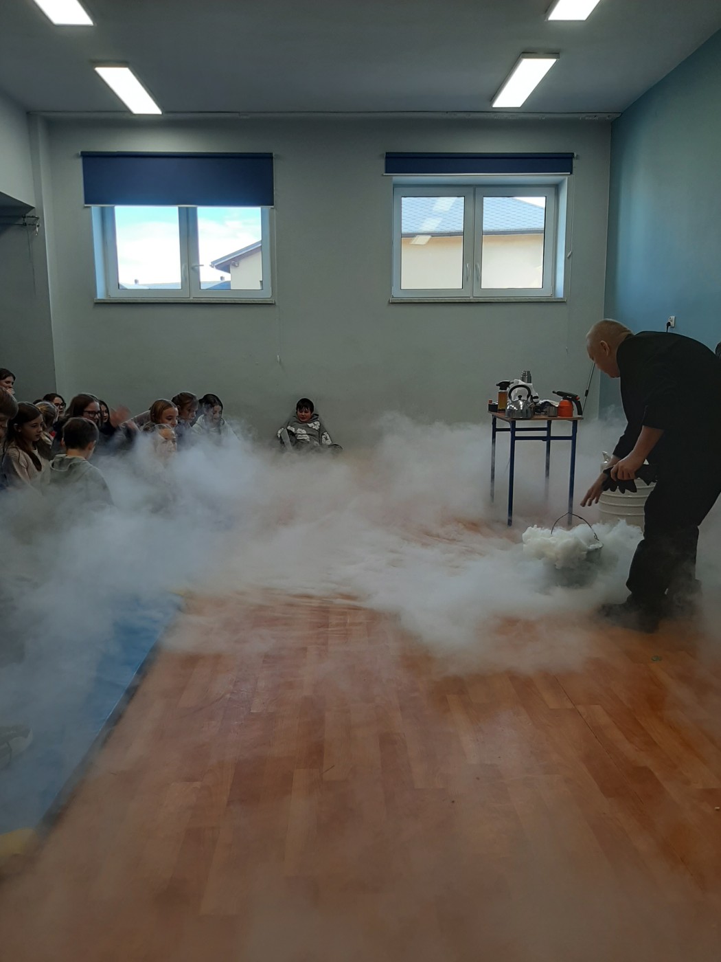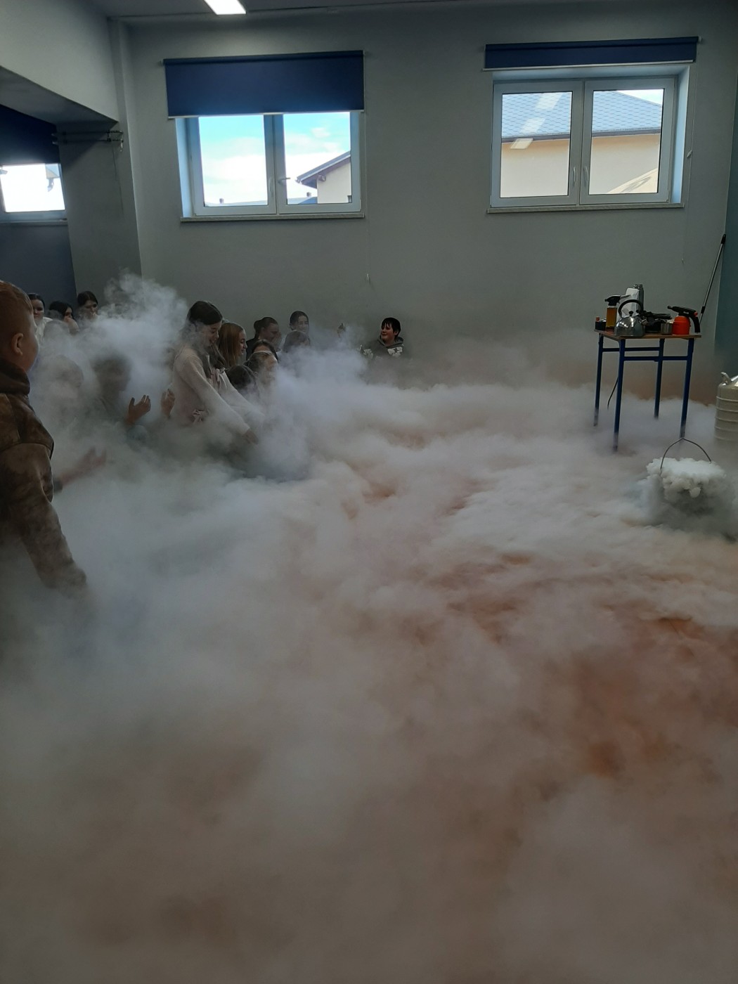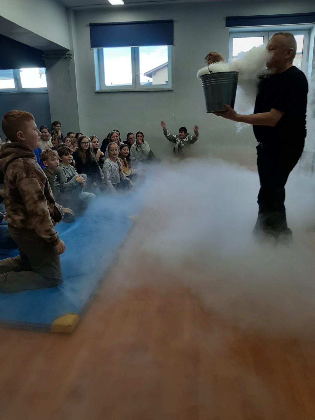Z okazji Dnia Nauki Polskiej uczniowie mieli okazję obejrzeć pokaz z ciekłym azotem.