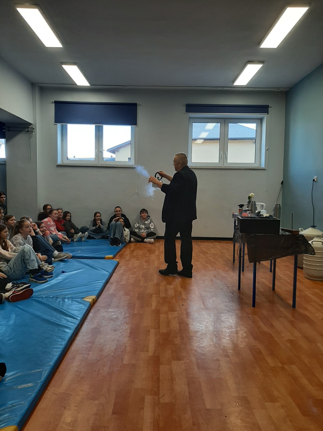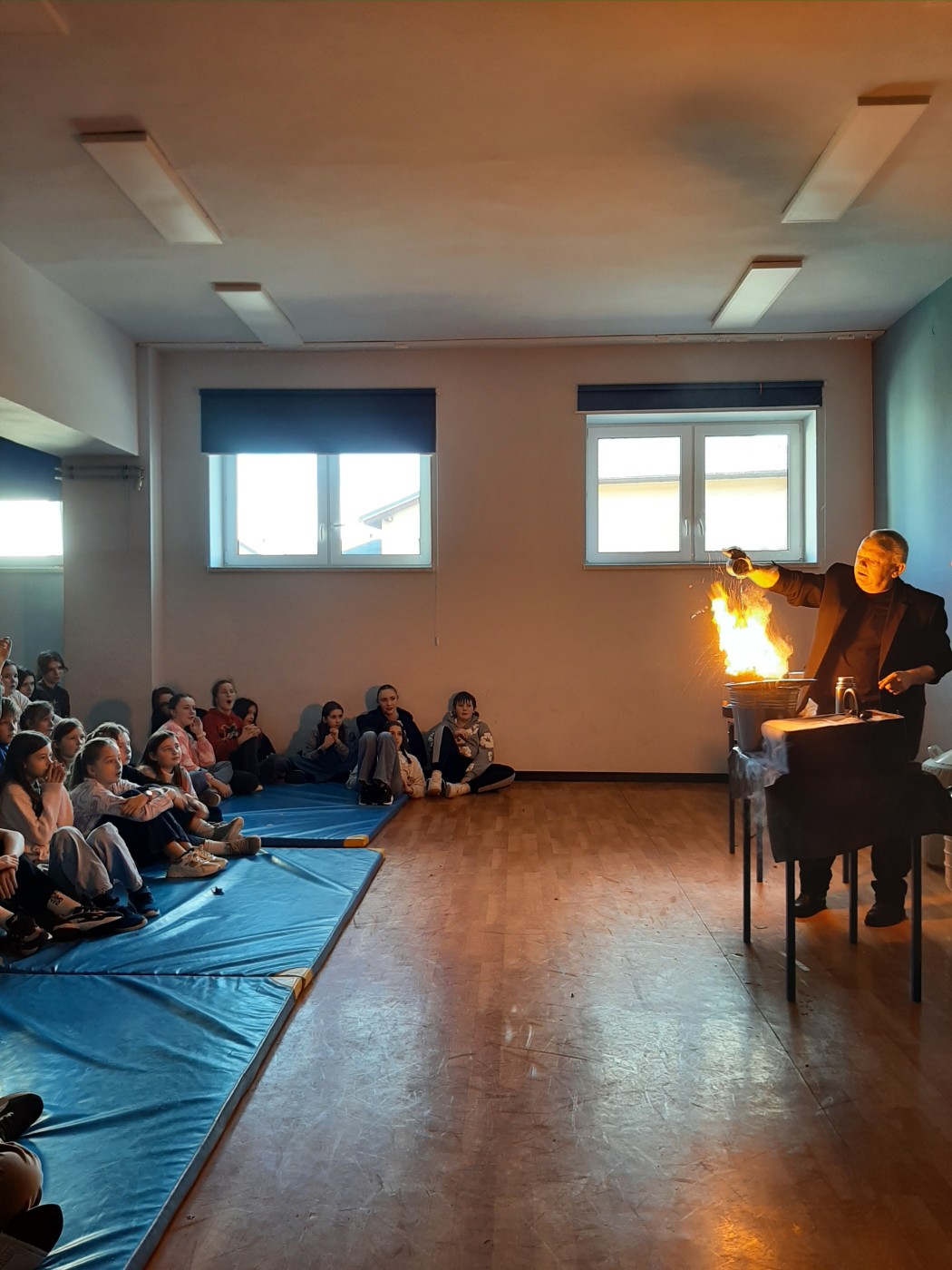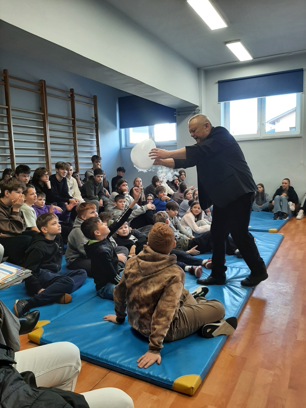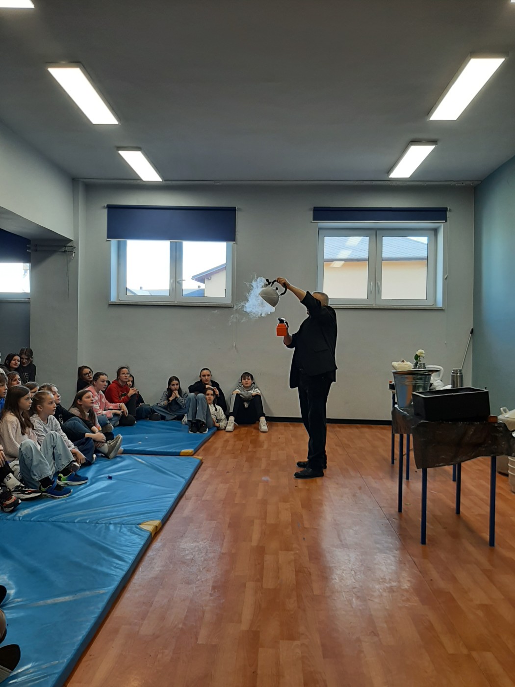 Z okazji Dnia Nauki Polskiej uczniowie mieli okazję obejrzeć pokaz z ciekłym azotem.