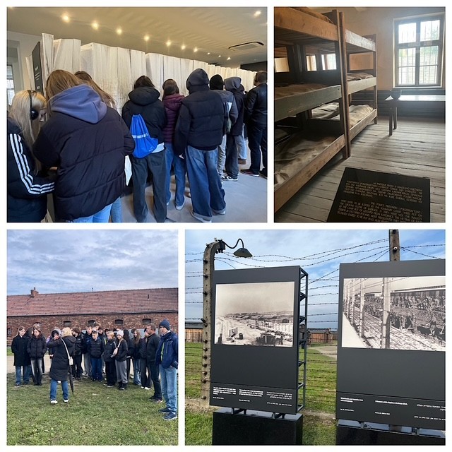 Pierwszym punktem programu było zwiedzanie Państwowego Muzeum Auschwitz-Birkenau w Oświęcimiu. Uczniowie, pod opieką przewodników, zapoznali się z tragiczną historią obozu koncentracyjnego i zagłady. Zwiedzanie obejmowało m.in. ekspozycje poświęcone ofiarom, baraki więźniarskie, rampę kolejową oraz ruiny komór gazowych. Była to niezwykle poruszająca i refleksyjna lekcja historii, która pozwoliła młodzieży zrozumieć skalę cierpienia ludzi w czasie II wojny światowej oraz wagę pamięci o tych wydarzeniach.
