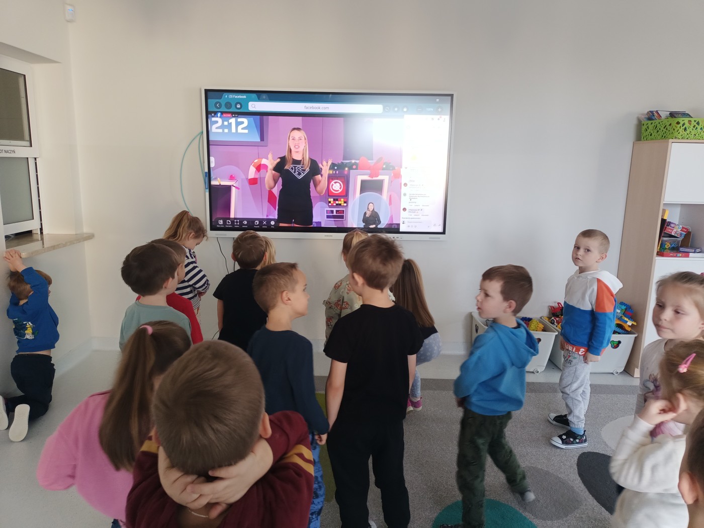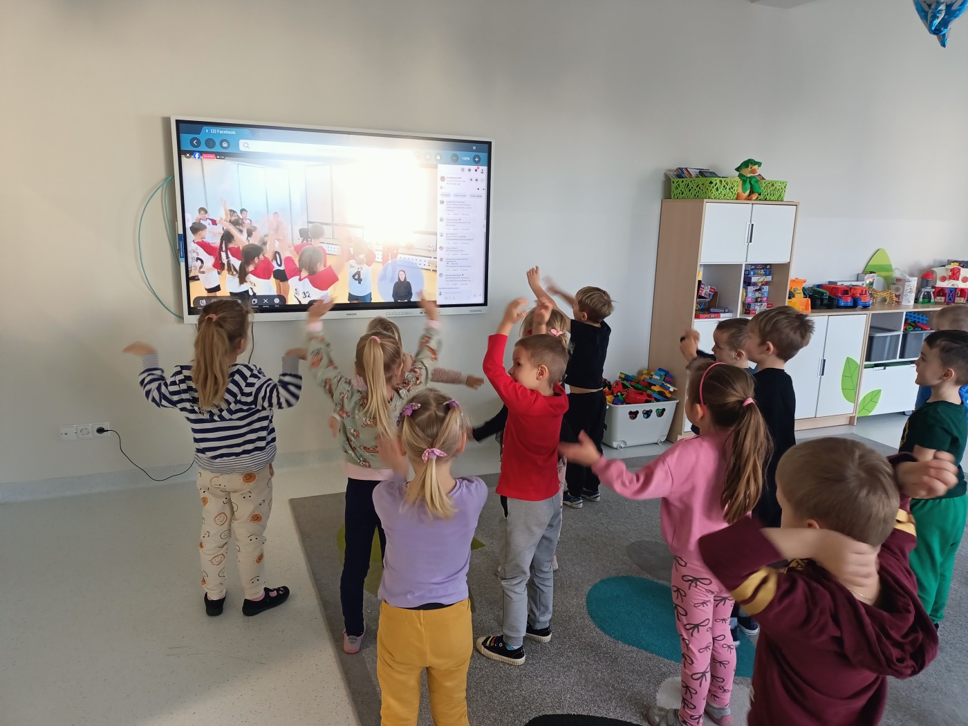 Dzisiaj przedszkolaki wzięły udział we wspólnych ćwiczeniach w ramach Programu Integracyjnego WF – Tajemnice Świątecznej Fabryki. Podczas zajęć dzieci, poprzez ruch i zabawę, rozwiązywały zagadki oraz wykonywały zadania ruchowe, pomagając Mikołajowi w świątecznych przygotowaniach.Ćwiczenia sprzyjały integracji grupy, rozwijały sprawność fizyczną, współpracę oraz uważność na potrzeby innych. Zajęcia dostarczyły dzieciom wiele radości i pozytywnych emocji.