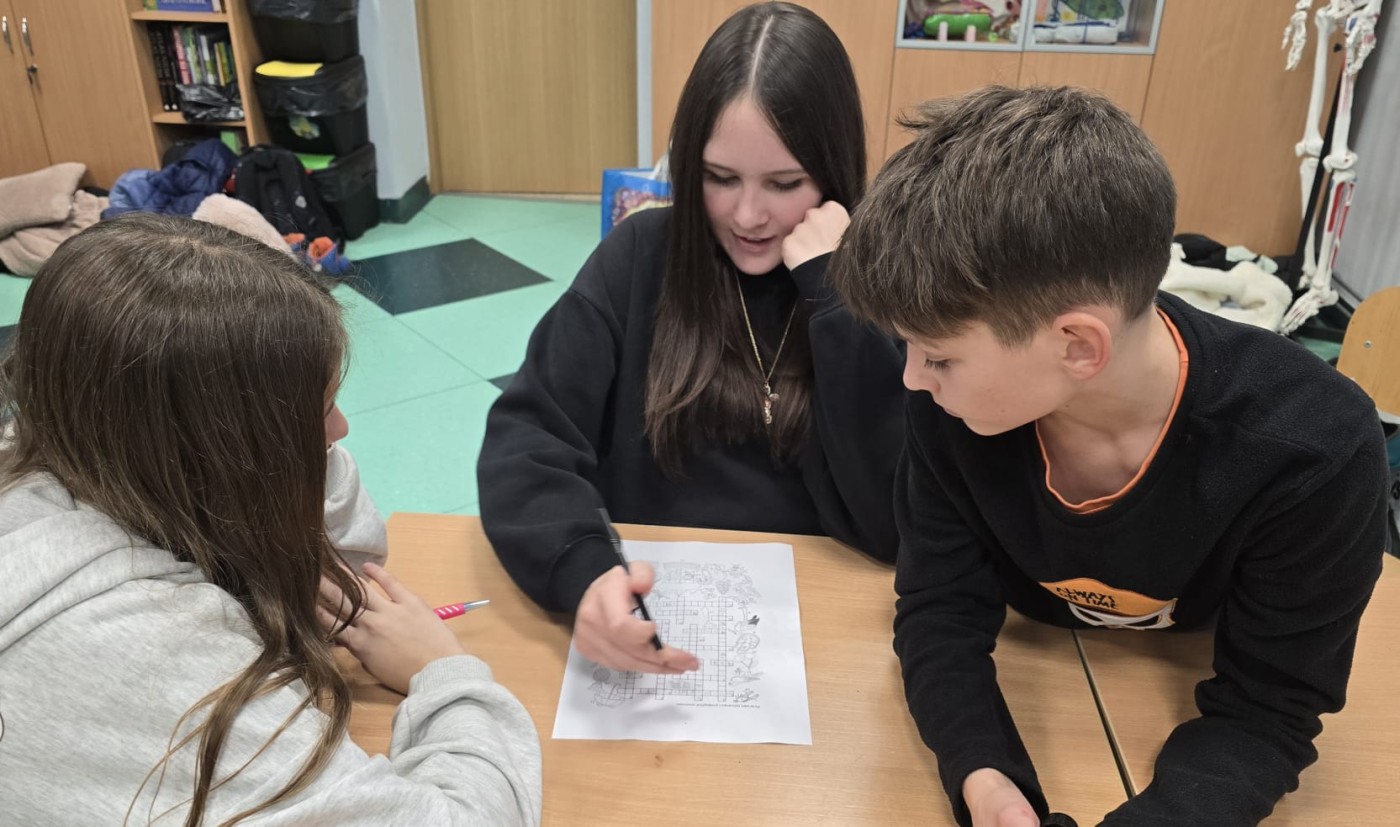 W piątkowy wieczór uczniowie klasy 6 spędzili niezwykły czas podczas Nocy w bibliotece, zorganizowanej przez bibliotekarza szkolnego i wychowawcę klasy. Na początek uczestnicy zostali podzieleni na drużyny i wyruszyli na szkolny korytarz, aby rozwiązywać zadania i zagadki, które wymagały sprytu, współpracy i uważnego szukania wskazówek. Emocji nie brakowało – każda grupa chciała jak najszybciej odnaleźć odpowiedzi i zdobyć punkty. Po pełnych wrażeń zmaganiach przyszedł czas na chwilę odpoczynku przy filmie „Lasse i Maja: Rabuś z pociągu”. Wspólne oglądanie detektywistycznej historii idealnie wpisało się w tematykę wieczoru. Na zakończenie, gdy zapadł zmrok, uczestnicy wzięli udział w najbardziej wyczekiwanej atrakcji – zabawie w chowanego z latarkami w ręku. Śmiechu, emocji i adrenaliny było co niemiara!