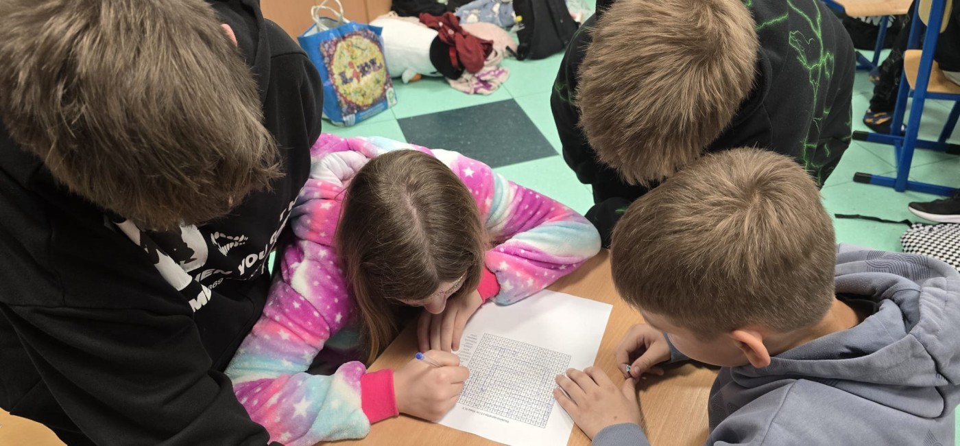 W piątkowy wieczór uczniowie klasy 6 spędzili niezwykły czas podczas Nocy w bibliotece, zorganizowanej przez bibliotekarza szkolnego i wychowawcę klasy. Na początek uczestnicy zostali podzieleni na drużyny i wyruszyli na szkolny korytarz, aby rozwiązywać zadania i zagadki, które wymagały sprytu, współpracy i uważnego szukania wskazówek. Emocji nie brakowało – każda grupa chciała jak najszybciej odnaleźć odpowiedzi i zdobyć punkty. Po pełnych wrażeń zmaganiach przyszedł czas na chwilę odpoczynku przy filmie „Lasse i Maja: Rabuś z pociągu”. Wspólne oglądanie detektywistycznej historii idealnie wpisało się w tematykę wieczoru. Na zakończenie, gdy zapadł zmrok, uczestnicy wzięli udział w najbardziej wyczekiwanej atrakcji – zabawie w chowanego z latarkami w ręku. Śmiechu, emocji i adrenaliny było co niemiara!