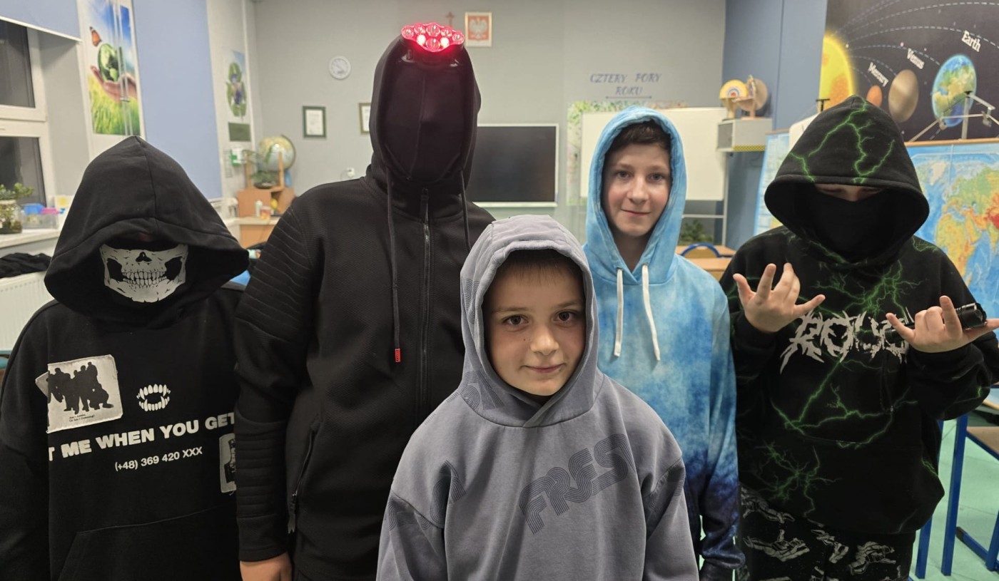 W piątkowy wieczór uczniowie klasy 6 spędzili niezwykły czas podczas Nocy w bibliotece, zorganizowanej przez bibliotekarza szkolnego i wychowawcę klasy. Na początek uczestnicy zostali podzieleni na drużyny i wyruszyli na szkolny korytarz, aby rozwiązywać zadania i zagadki, które wymagały sprytu, współpracy i uważnego szukania wskazówek. Emocji nie brakowało – każda grupa chciała jak najszybciej odnaleźć odpowiedzi i zdobyć punkty. Po pełnych wrażeń zmaganiach przyszedł czas na chwilę odpoczynku przy filmie „Lasse i Maja: Rabuś z pociągu”. Wspólne oglądanie detektywistycznej historii idealnie wpisało się w tematykę wieczoru. Na zakończenie, gdy zapadł zmrok, uczestnicy wzięli udział w najbardziej wyczekiwanej atrakcji – zabawie w chowanego z latarkami w ręku. Śmiechu, emocji i adrenaliny było co niemiara!