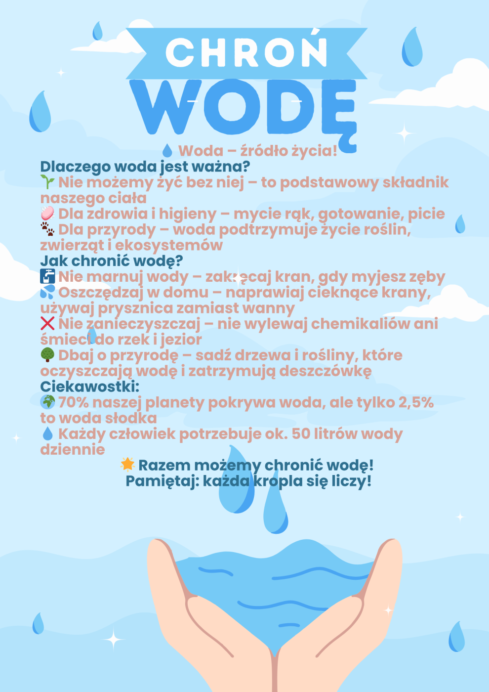 - Rozwijanie świadomości na temat oszczędzania wody