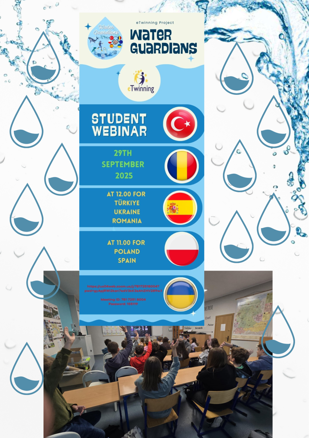 Our school is participating in the international eTwinning project “Water Guardians”, aimed at understanding the importance of water and ways to protect it. The project is carried out in cooperation with schools from Spain, Ukraine, Romania, and Turkey. Students share experiences, create educational materials together, and learn how to care for water resources in their countries.