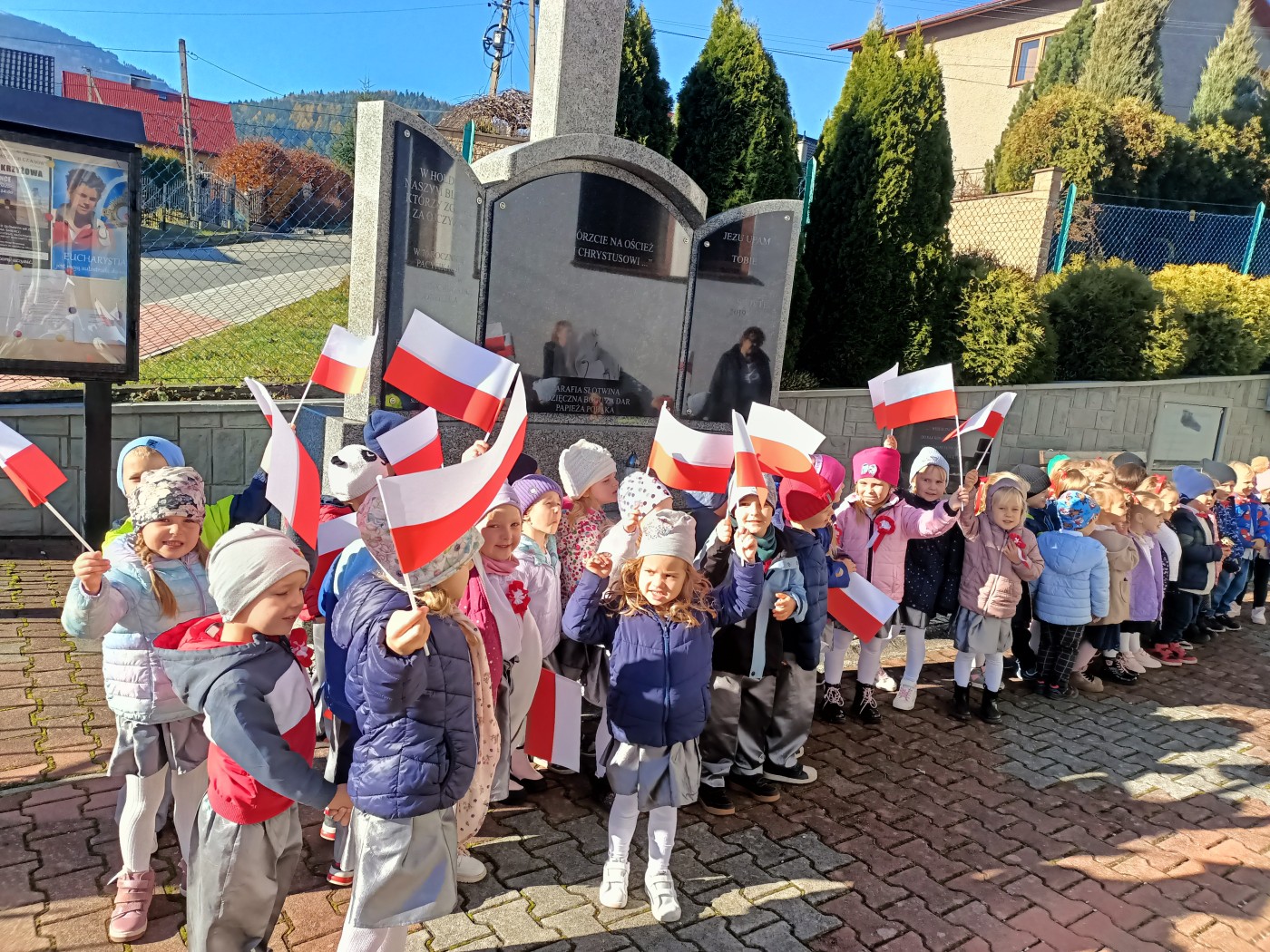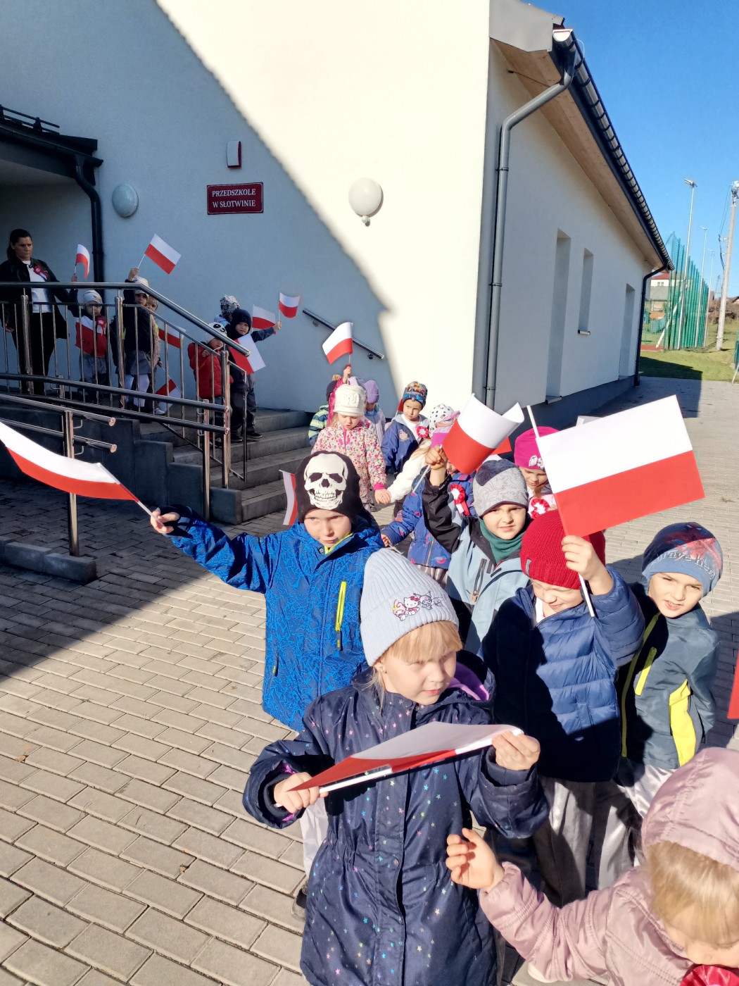 Przedszkolaki wraz z wychowawcami wyruszyły w przemarszu pod pomnik w Słotwinie, gdzie wspólnie oddały hołd osobom, które zginęły za naszą Ojczyznę. Dzieci z dumą i wzruszeniem odśpiewały też hymn narodowy „Mazurek Dąbrowskiego”, a następnie zaprezentowały wiersz „Kto ty jesteś? – Polak mały”, przypominając wszystkim o tym, jak ważna jest miłość do ojczyzny i pamięć o jej bohaterach.