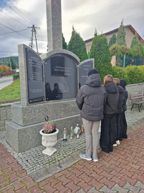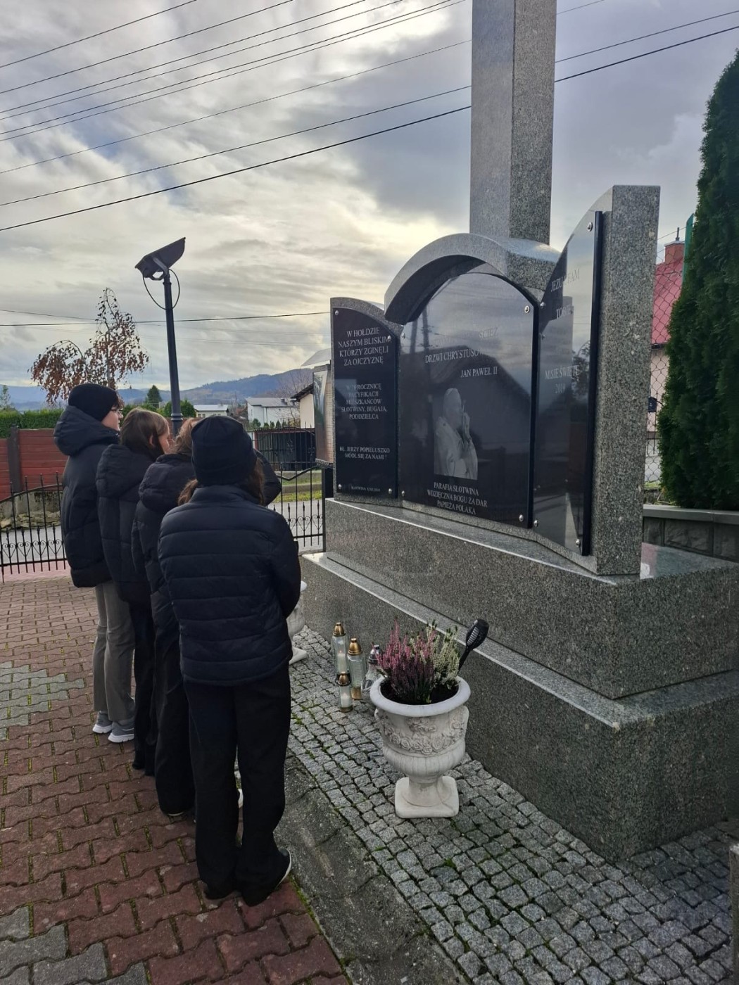 Z okazji Święta Zmarłych przedstawiciele Samorządu Uczniowskiego zapalili znicz i złożyli hołd przy pomniku poległych obok kościoła w Słotwinie.