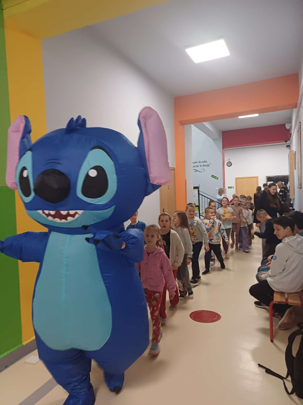 Centralnym punktem dnia była wizyta ogromnego Sticha, który wzbudzał zachwyt zarówno u młodszych, jak i starszych uczniów. Postać prowadziła różnorodne zabawy ruchowe na korytarzu oraz w sali gimnastycznej. Śmiech i radość wypełniały całą szkołę.