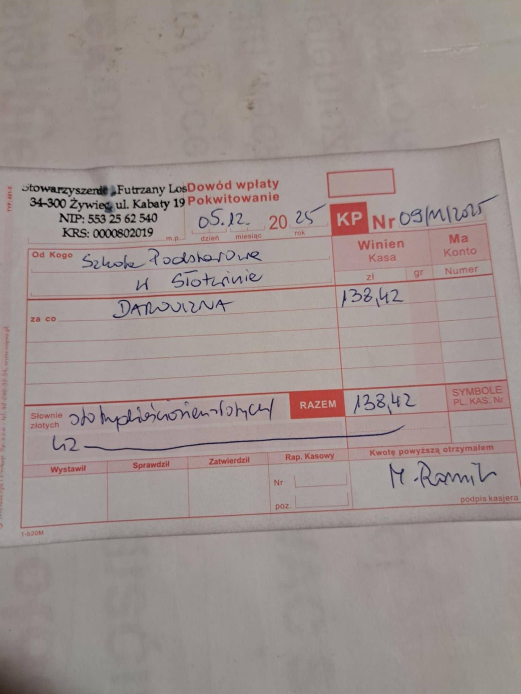 Szkolne Koło Wolontariatu serdecznie dziękuje za liczny udział w akcji - Zbiórka darów dla Schroniska dla zwierząt w Żywcu. Już po raz kolejny pokazaliście, że można na Was zawsze liczyć. Oprócz karmy i rzeczy potrzebnych zwierzętom, zebraliśmy 138,42 .