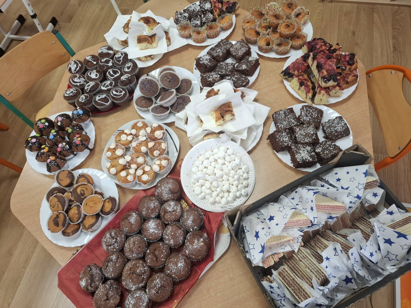 Samorząd Uczniowski wraz z opiekunem zorganizował wyjątkową akcję, podczas której wszyscy uczniowie mogli spróbować pysznych wypieków – babeczek, ciast i ciasteczek przygotowanych przez członków samorządu. Słodkości sprzedawano za symboliczne kwoty, a zebrane w ten sposób pieniądze zostaną przeznaczone na realizację działań i projektów samorządu szkolnego. Wydarzenie cieszyło się dużym zainteresowaniem – w szkolnych korytarzach unosił się zapach świeżych wypieków, a uśmiechy uczniów potwierdzały, że wspólne inicjatywy potrafią połączyć przyjemne z pożytecznym.