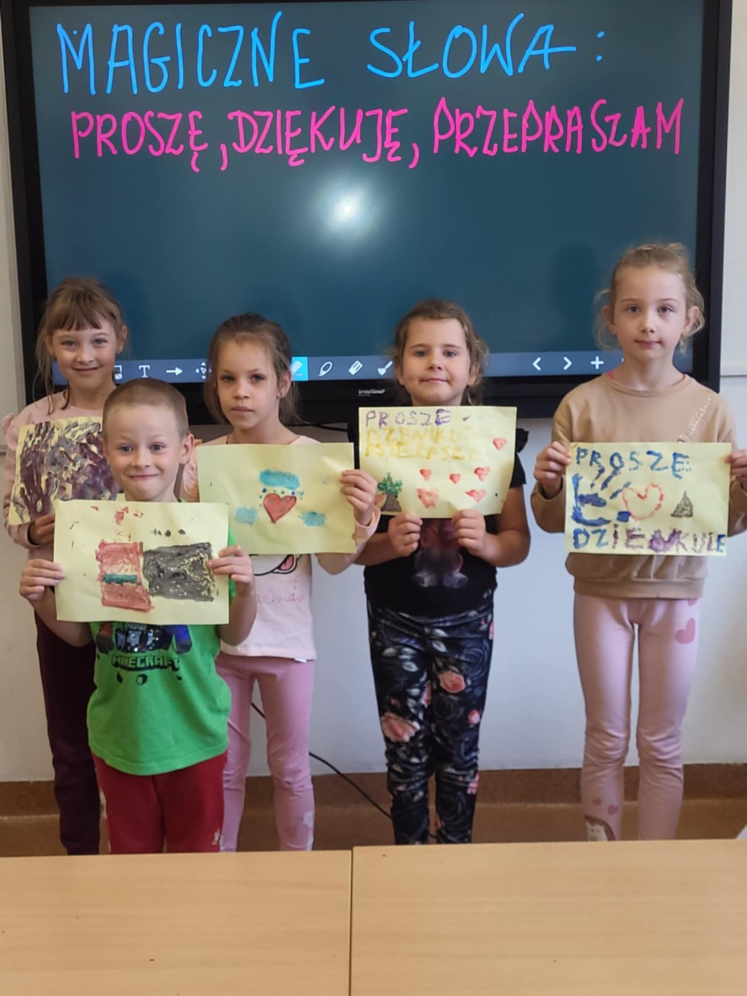 W ramach ogólnopolskiej inicjatywy TYDZIEŃ BUDOWANIA RELACJI, dzieci uczęszczające do naszej świetlicy szkolnej wraz z mgr Barbarą Jakubiec wzięły udział w projekcie pt. „Magiczne słowa: proszę, przepraszam, dziękuję”. Promował on kulturę słowa i wartości, takie jak: uprzejmość, empatia i szacunek. Uczniowie wykonali piękne prace plastyczne, które w kreatywny sposób ilustrują znaczenie magicznych słów w codziennym życiu. Projekt był doskonałą okazją do rozmów o dobrych manierach oraz rozwijania wrażliwości na potrzeby innych.