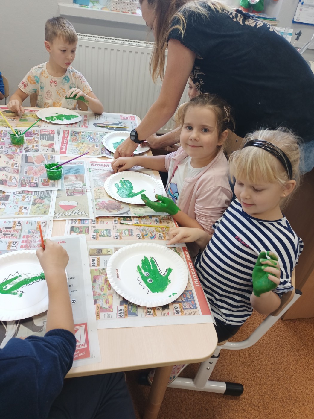 Ważną częścią spotkania były kreatywne rozwiązania plastyczne, podczas których dzieci stworzyły swoje własne pomysły na Krokodyla Ksawerego i Sowę Sonię.
