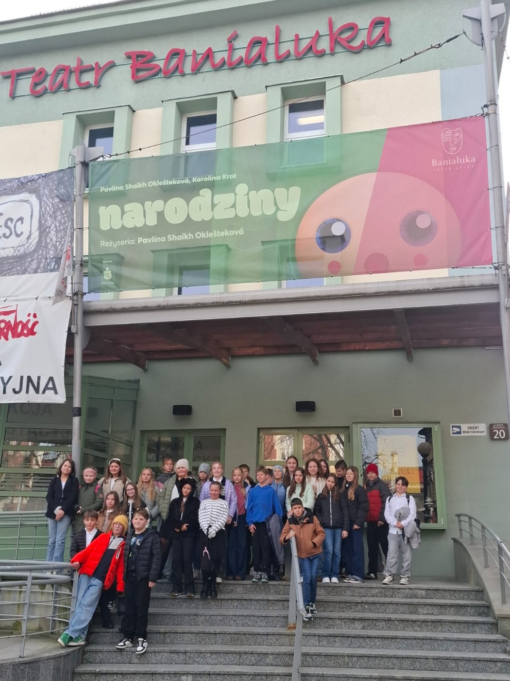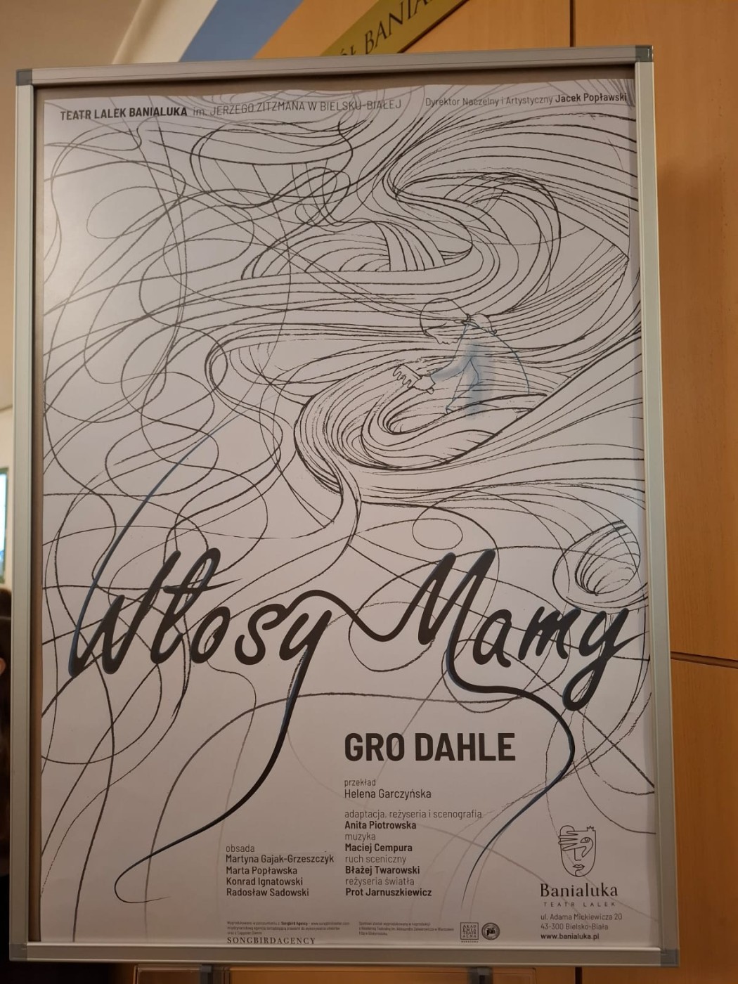 Uczniowie klas 4 – 6 wybrali się do Teatru Banialuka w Bielsku – Białej na sztukę pt. Włosy mamy. Był to niezwykły spektakl, oparty na norweskiej książce Gro Dahle o tym samym tytule i opowiadał o trudnym, ale ważnym temacie – o dziecku, którego mama zmagała się z depresją. Już od pierwszych chwil było wiadomo, że przedstawienie miało na celu uświadomić widzom problemy ludzi współczesnego świata. Na scenie pojawiła się dziewczynka, która była mocno związana ze swoją mamą i starała się zrozumieć, dlaczego ona wciąż leży w łóżku i jest smutna. Symbolem choroby kobiety stały się włosy – coraz dłuższe, ciemniejsze, splątane, przytłaczające. W pewnym momencie wypełniły całą scenę. Oddały melancholijny nastrój Emmy, głównej bohaterki. Scenografia w połączeniu z nastrojową i subtelną muzyką świetnie podkreśliłaemocje bohaterów. Doskonała gra aktorów pomogła uświadomić młodym widzom, jak ważne jest rozmawianie o emocjach i proszenie o pomoc, gdy czujemy się źle. Sztuka uczyła zrozumienia, empatii i odwagi, wartości, które w dzisiejszym świecie są na wagę złota.