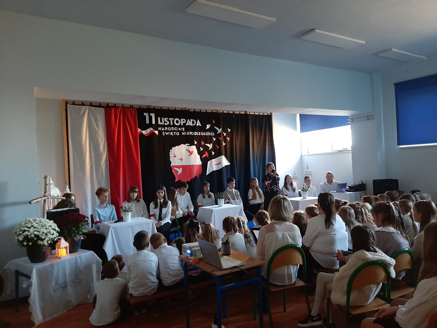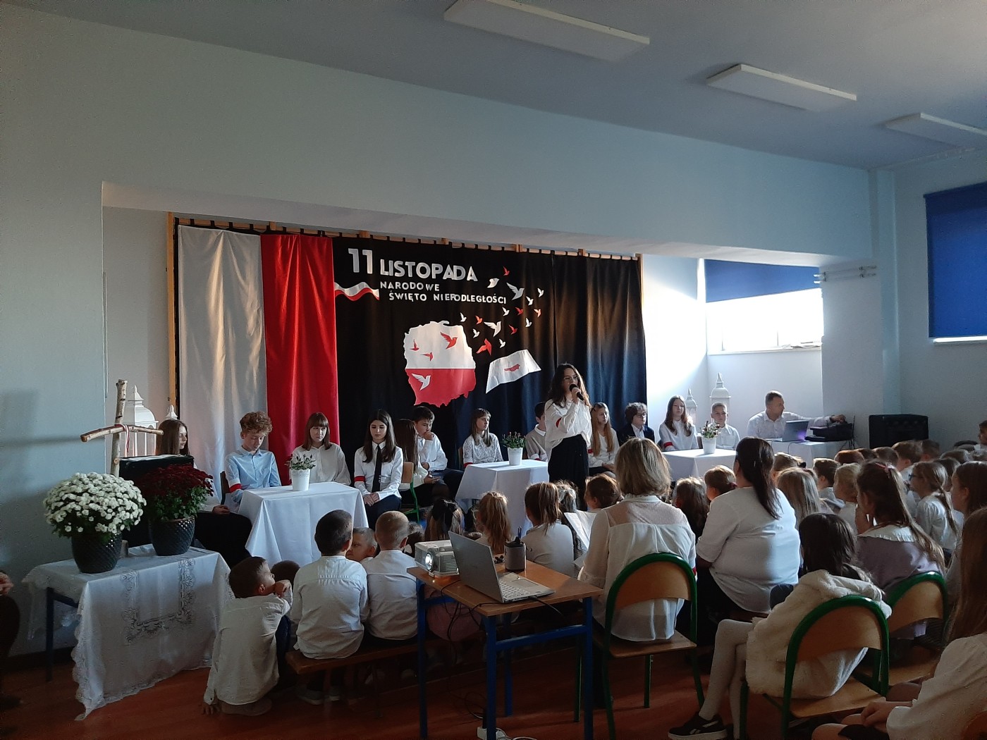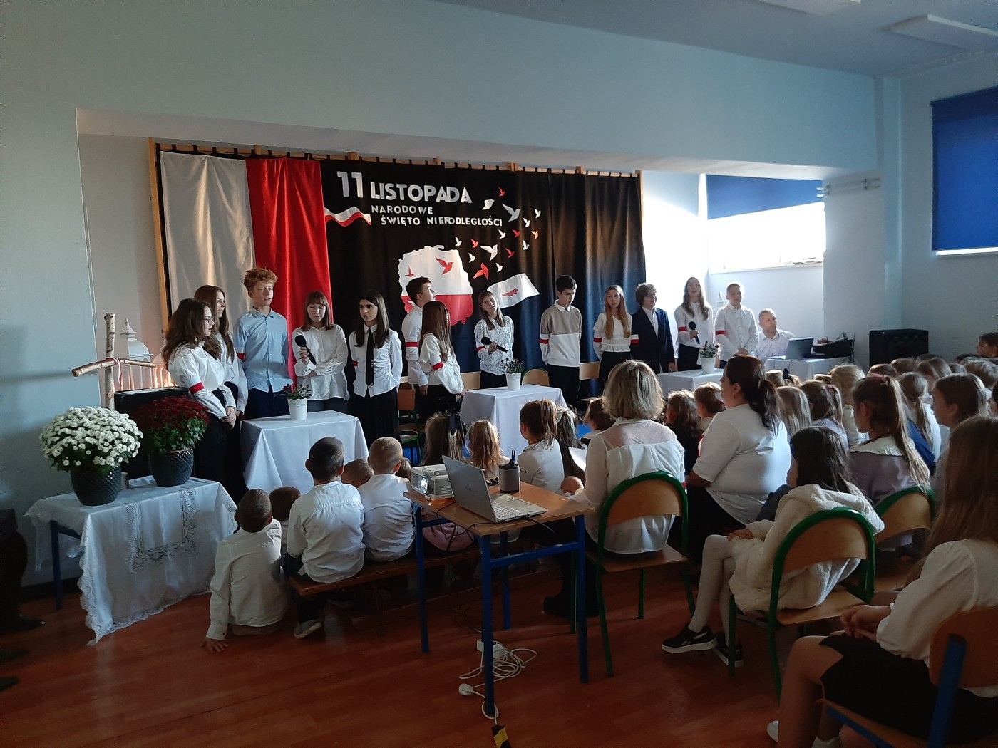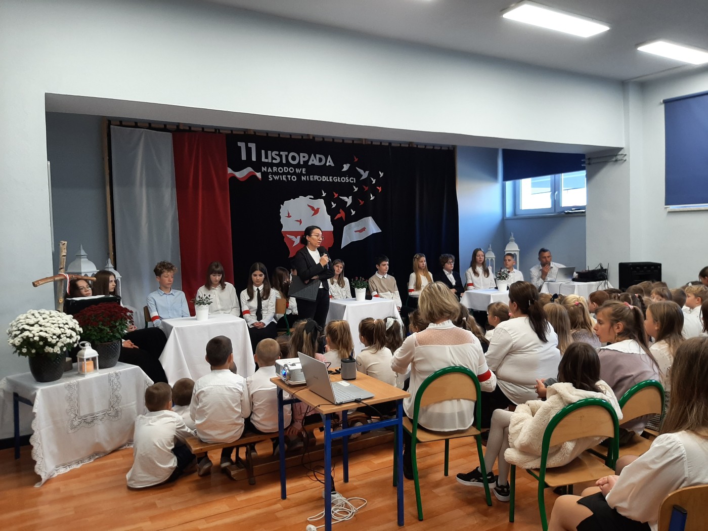 Po powrocie do szkoły uczniowie klasy 7 zaprezentowali piękny program artystyczny, w którym znalazły się patriotyczne wiersze, pieśni oraz film ukazujący najważniejsze wydarzenia z dziejów Polski. Dzięki ich zaangażowaniu cała społeczność szkolna mogła jeszcze raz przypomnieć sobie, jak długą i trudną drogę przebył nasz kraj, by odzyskać wolność.