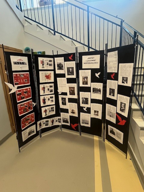 W szkolnym korytarzu powstała również gazetka tematyczna poświęcona „Matkom i Ojcom Niepodległości”, przypominająca o bohaterach, dzięki którym Polska mogła znów zaistnieć na mapie Europy.